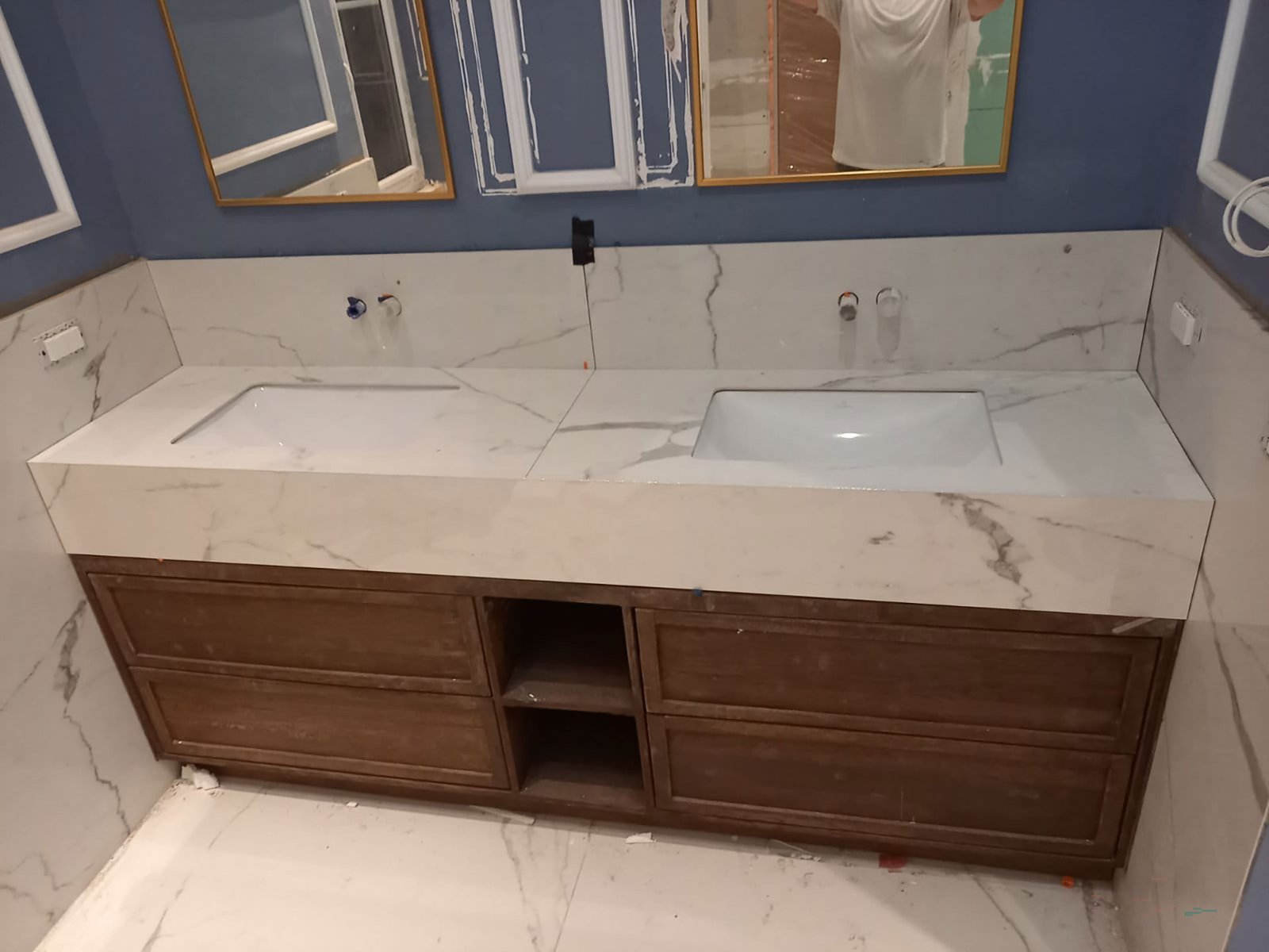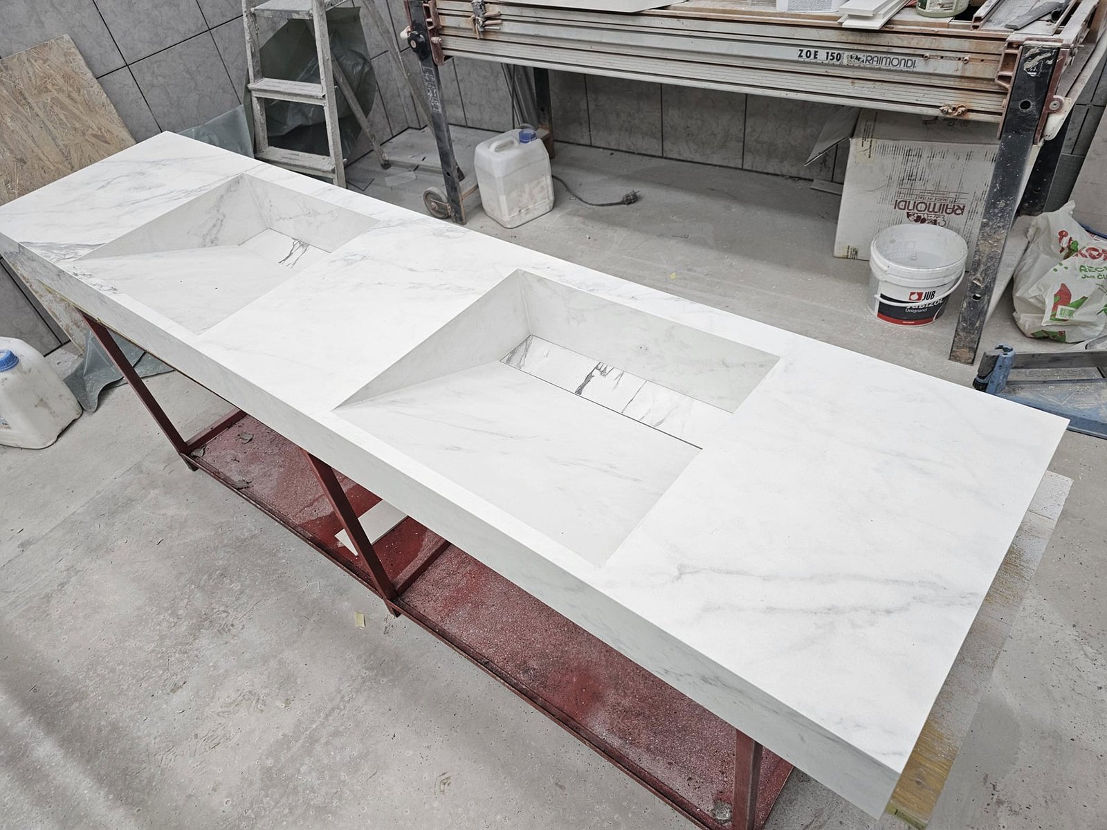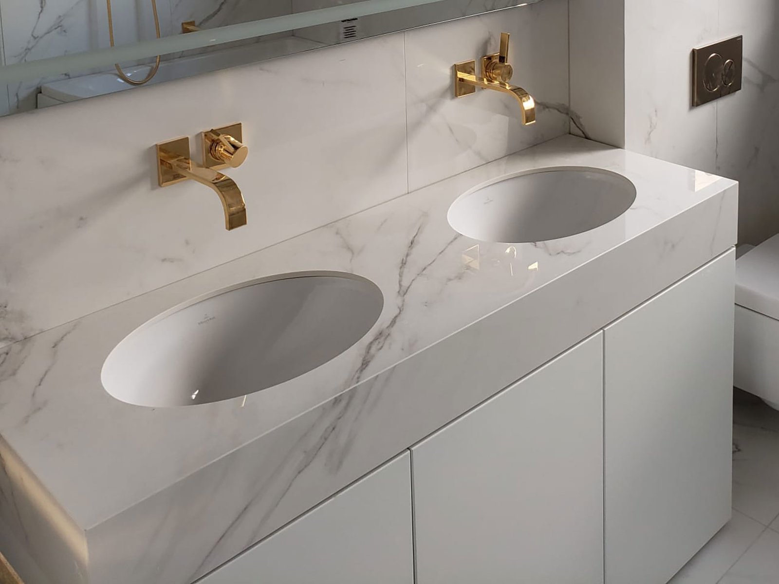 - Korišteni materijali keramika Marazzi kvarc Silestone sinterirani kamen Dekton umjetni kamen prirodni kamen kvarcit